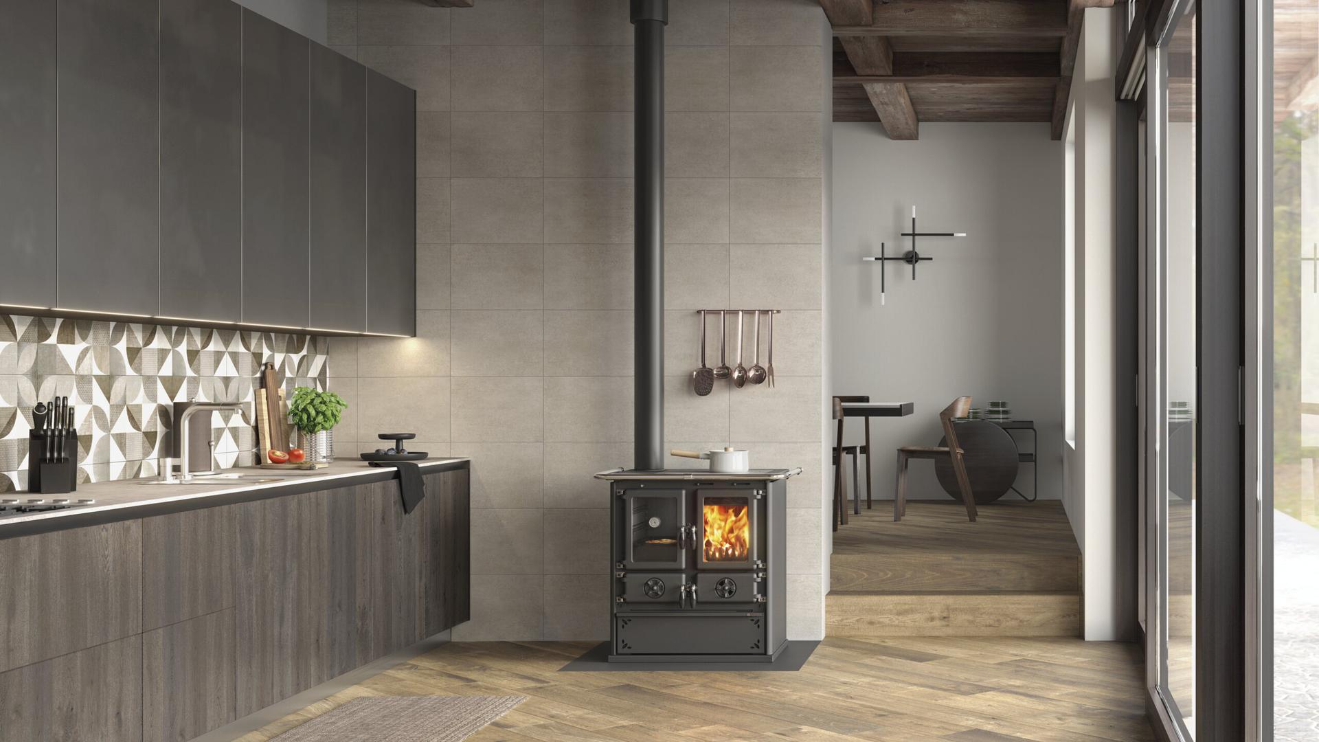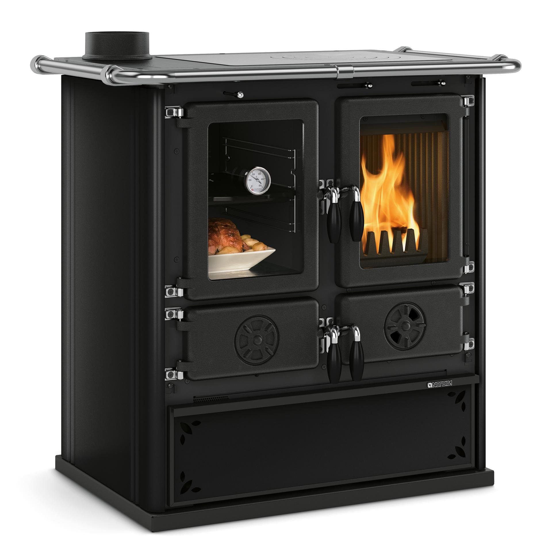Rosetta Sinistra 5.0 se odlikuje po odvodu dima na levi strani, kar je konkreten odgovor na posebne zahteve pri vgradnji. Litoželezno ognjišče in 28-litrska pečica združujeta eleganco in zmogljivost, saj ogrevata prostor, hkrati pa pripravljata jedi s pristnim okusom.