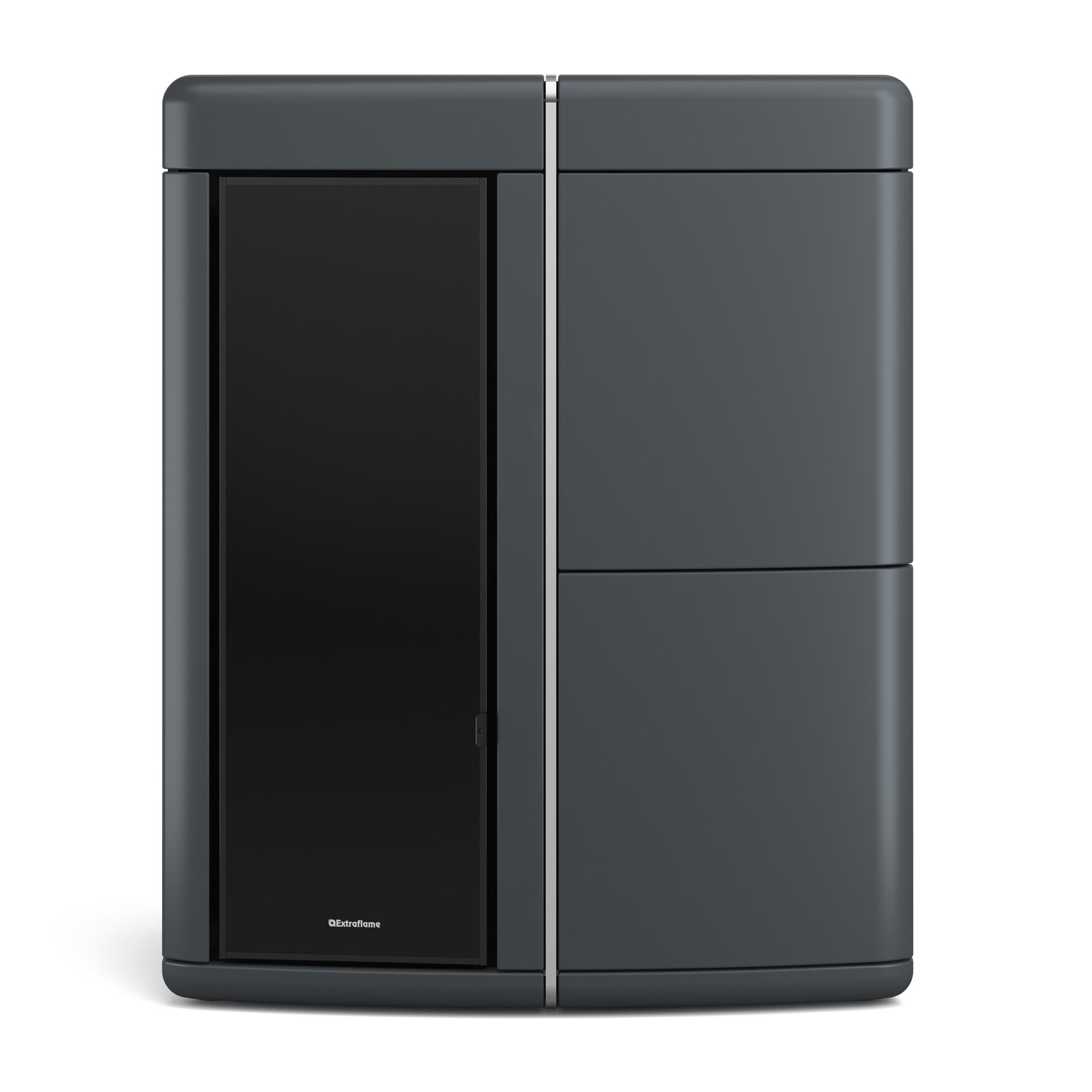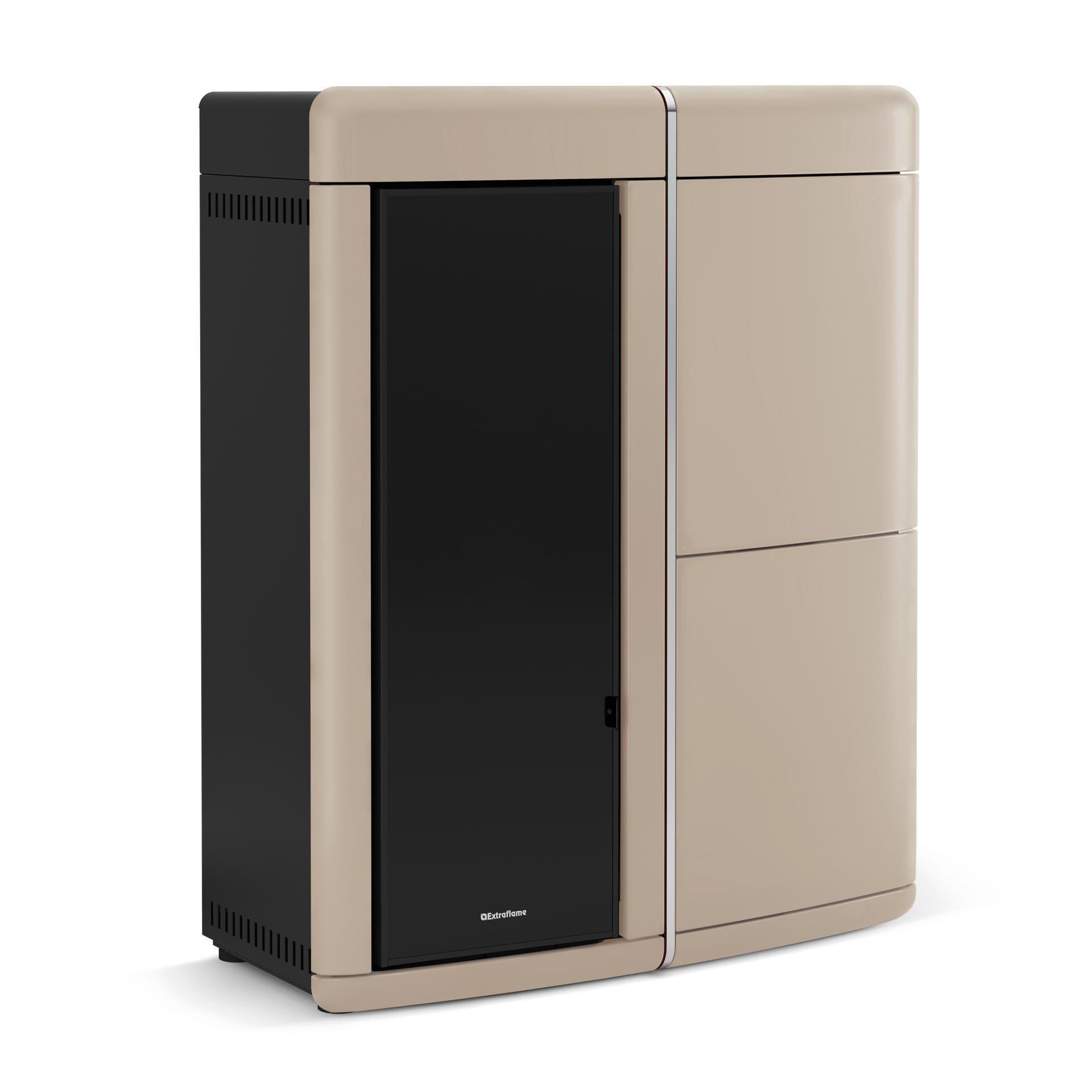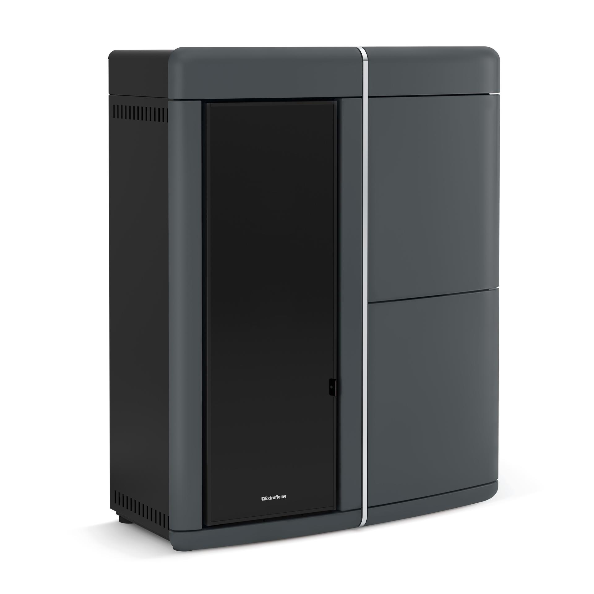 Kompaktna, zmogljiva in elegantno oblikovana termo peč na pelete Evelyne Idro 2.0 je popolna rešitev za tiste, ki zahtevajo najvišjo kakovost in izdelek, ki ga je mogoče popolnoma vključiti v bivalni prostor. Zaradi obloge iz majolike in standardnega stekla Black Screen postane peč Extraflame Evelyne Idro pravi dragulj v opremi notranjosti. Ima dvojna vrata, od katerih so zunanja opremljena z ravnim kaljenim steklom. Zaradi priključkov na dimnik zadaj, zgoraj in ob strani je enostavno najti pravo mesto za vgradnjo.