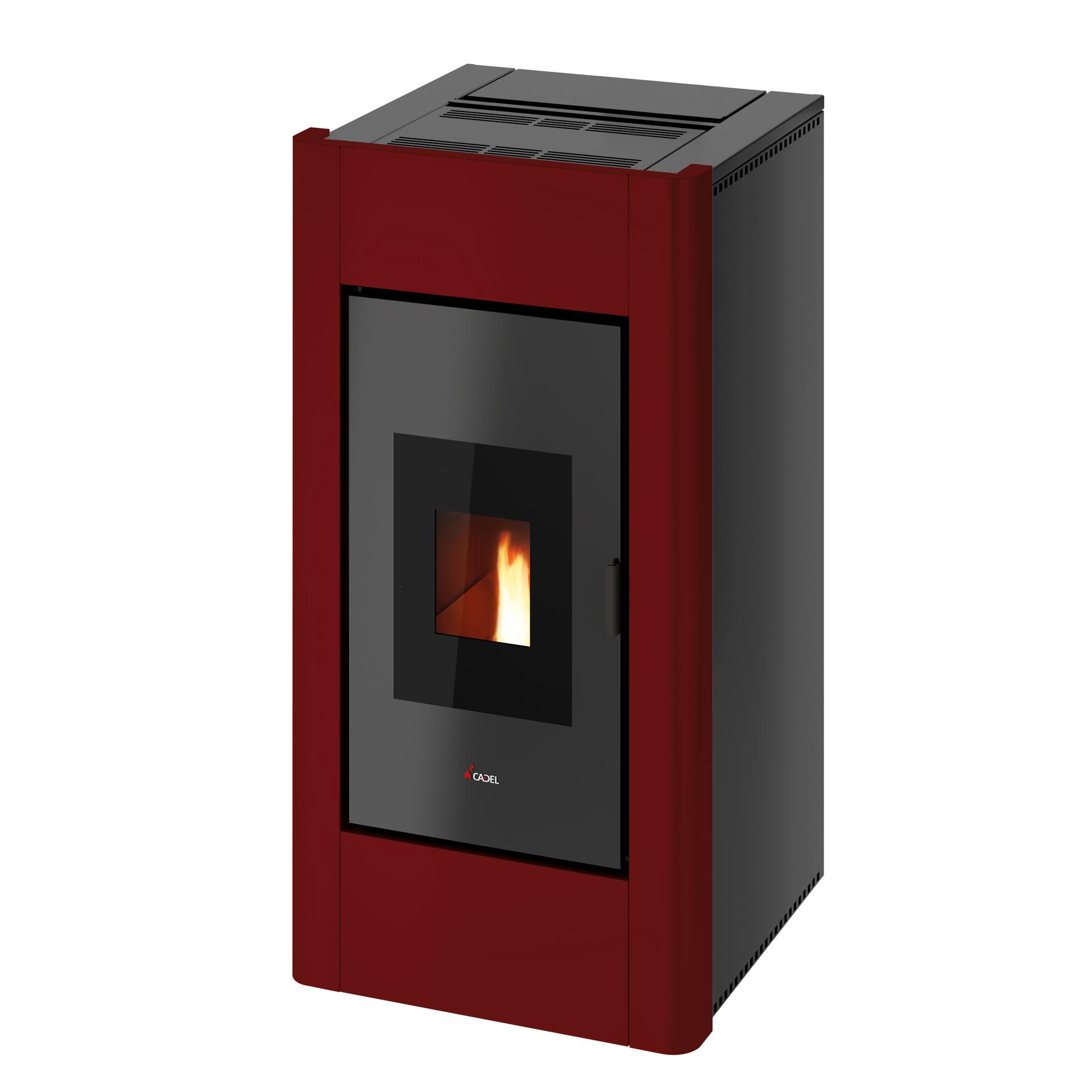 Termo kaminska peč na pelete z impresivnim dizajnom, ki jo odlikuje moč 30 kW in hidravlični sistem, ki v celoti izkoristi proizvedeno toploto in jo razdeli v vse prostore v celotni stavbi. Prevleka iz pobarvanega jekla.