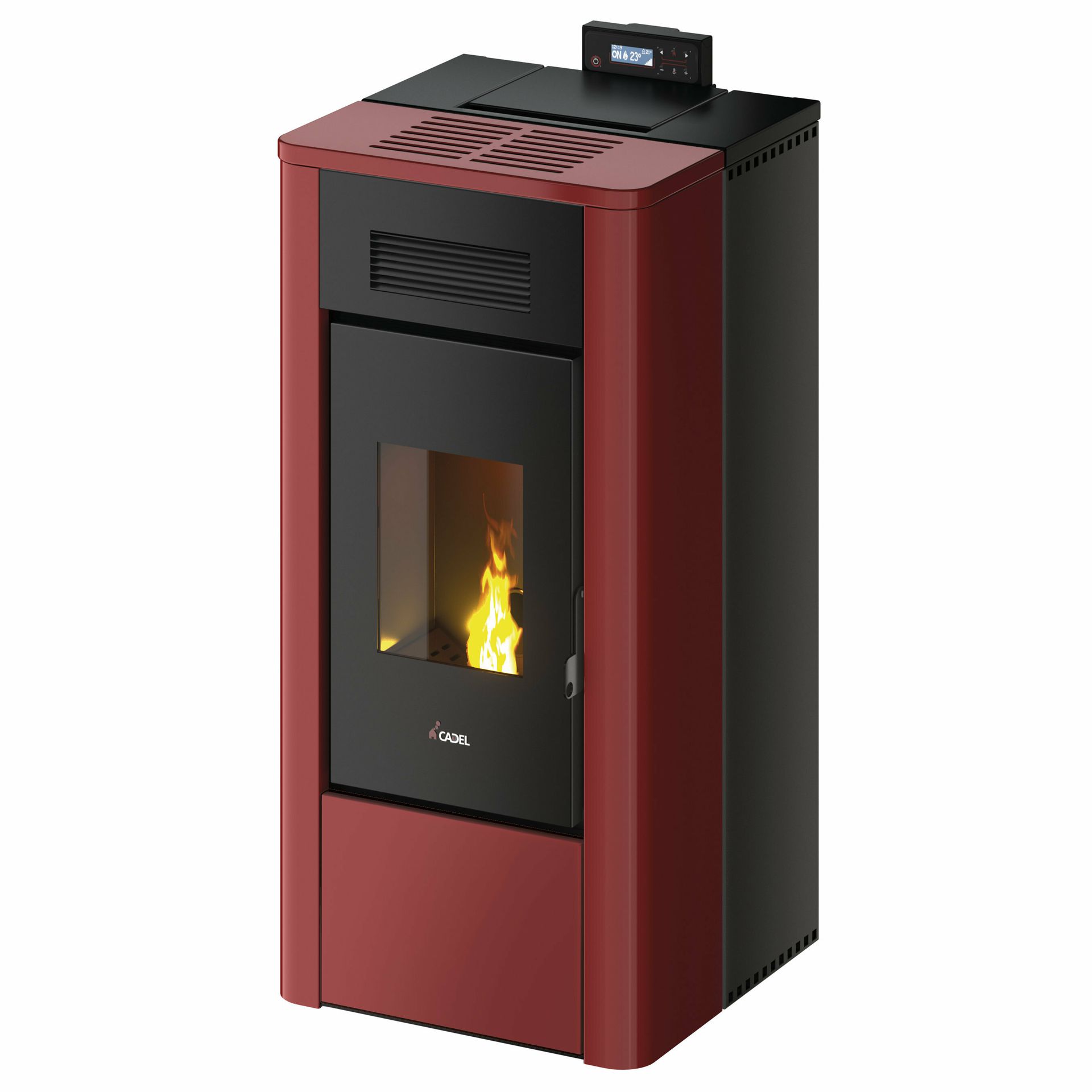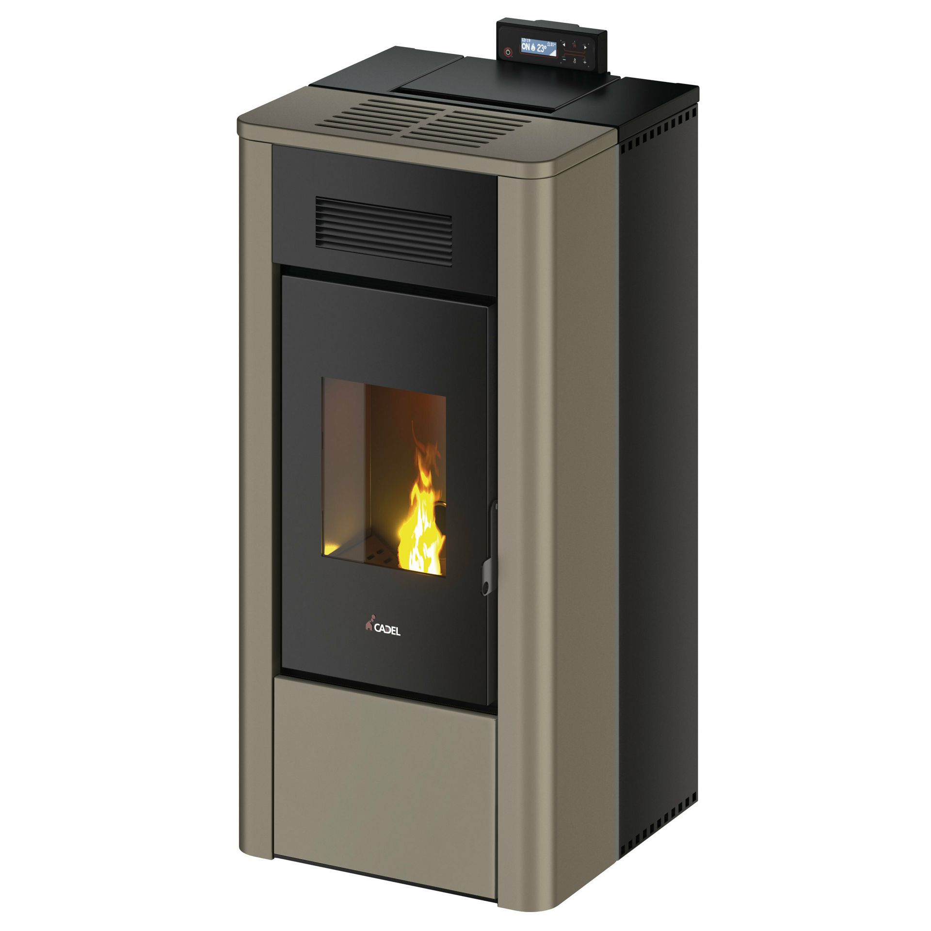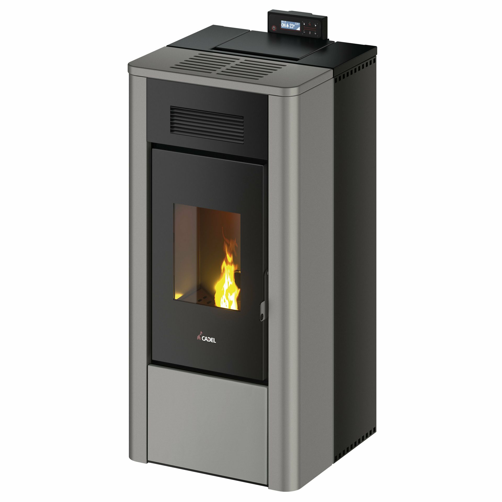 Vodna peč na pelete z minimalnim elegantnim dizajnom z zunanjo oblogo iz barvanega jekla.