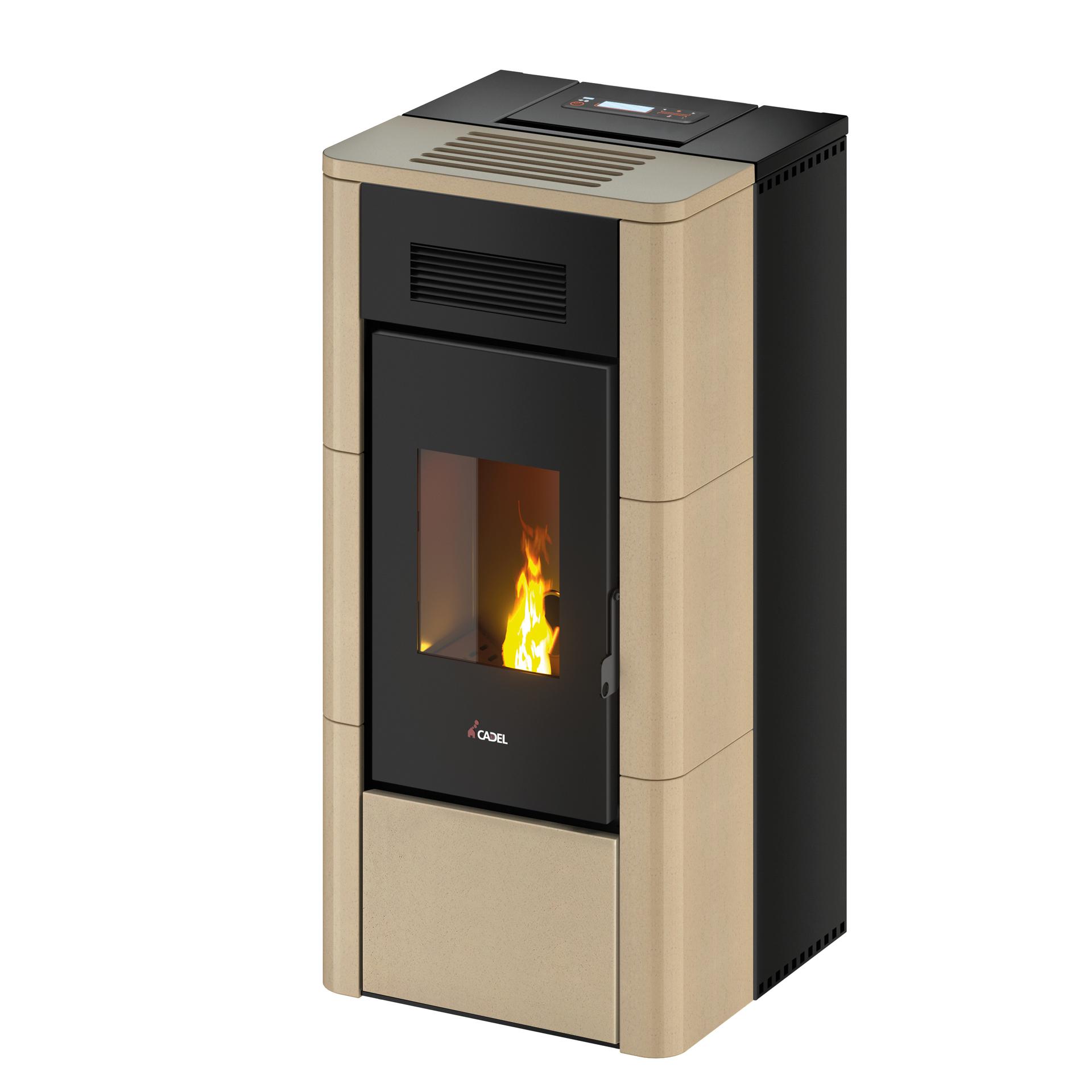 Ventilatorska vodna peč z minimalističnim elegantnim videzom, s kovinsko oblogo, ki vključuje elemente majolike. Opremljena je s keramično vžigalno svečko Go Fast, samočistilno posodo kurišča in novo zgorevalno komoro certificirano s petimi zvezdicami.