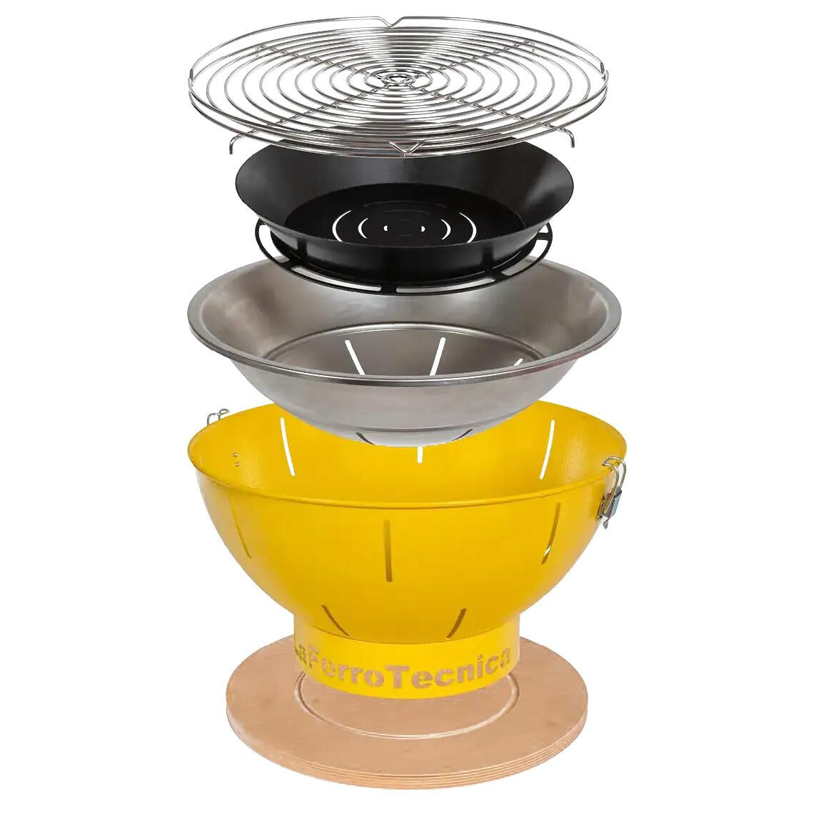 Njena kompaktna in pisana zasnova je privlačna za oči in hkrati zelo funkcionalna. Njegov robusten jekleni okvir je zasnovan za peko na oglju, je vzdržljiv in enostaven za čiščenje, leseno dno pa mu daje stabilnost in eleganco. Žar Smile je lahek in uporabniku prijazen ter ima priročno torbo za prenašanje, zato ga lahko brez težav vzamete s seboj, kjerkoli vas čaka pustolovščina z žarom.