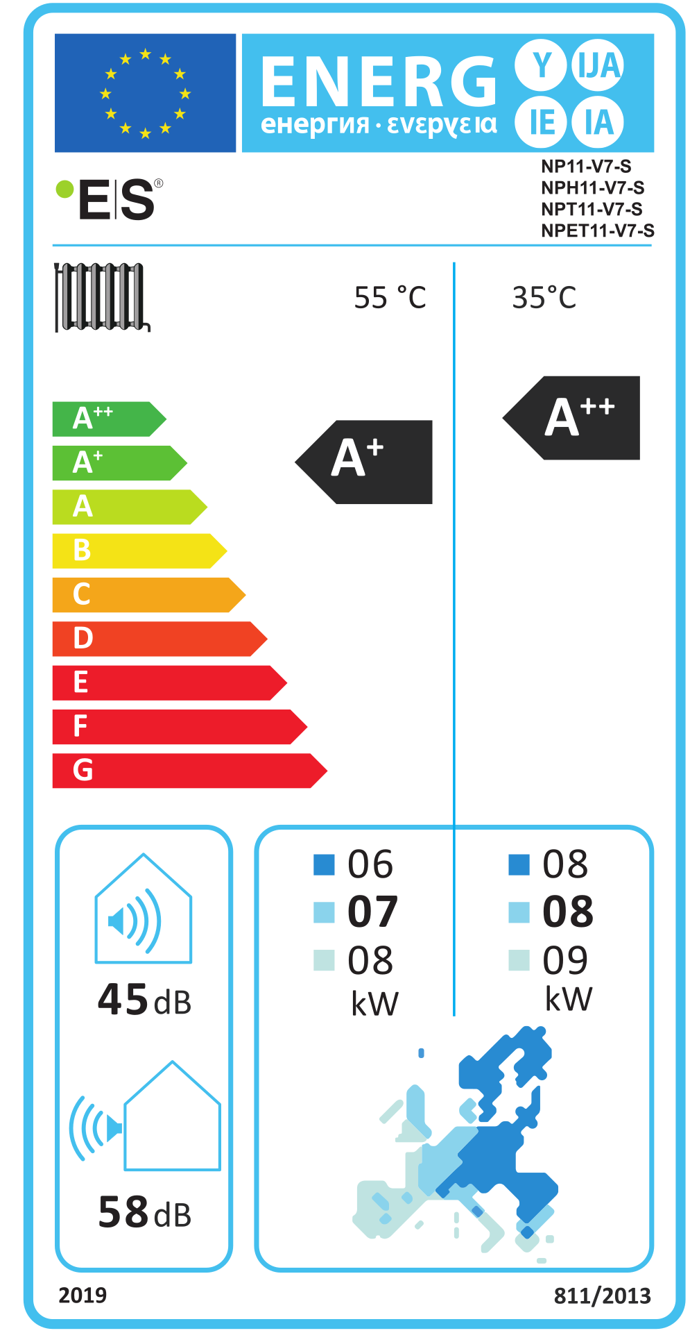 Z uporabo sestavnih delov vodilnih dobaviteljev (glej spodnjo tabelo) in pametnim upravljanjem je mogoče doseči velike prihranke energije in tiho delovanje. Vse serije NPT-V7 imajo razred A++/+++.